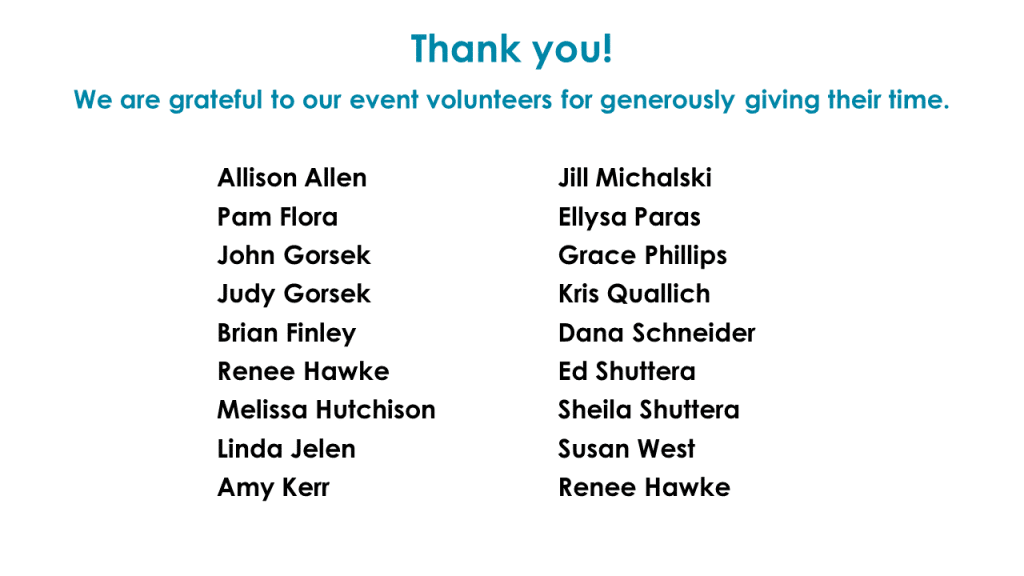 A special thank you to the Fundraising Committee for planning a wonderful event and to the event volunteers for helping everything run smoothly!