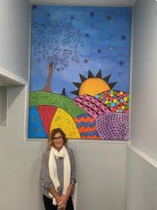 I’m proud to play a part in positively impacting children. I’m also proud of the mural I painted for the entrance to the Family Visitation Center. I hope it has brought smiles to the children who enter the building.